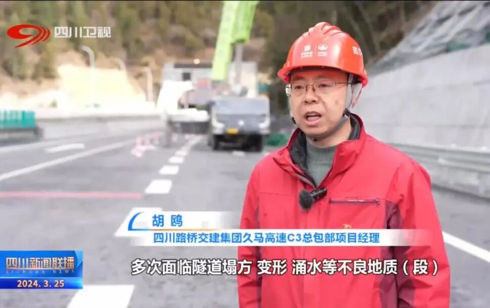 四川路桥交建集团久马高速C3总包部项目经理 胡鸥:多次面临隧道塌方、变形、涌水等不良地质段,我们提升隧道施工机械化程度,提升工序的质量和效率,安全顺利保障通车目标的实现。
